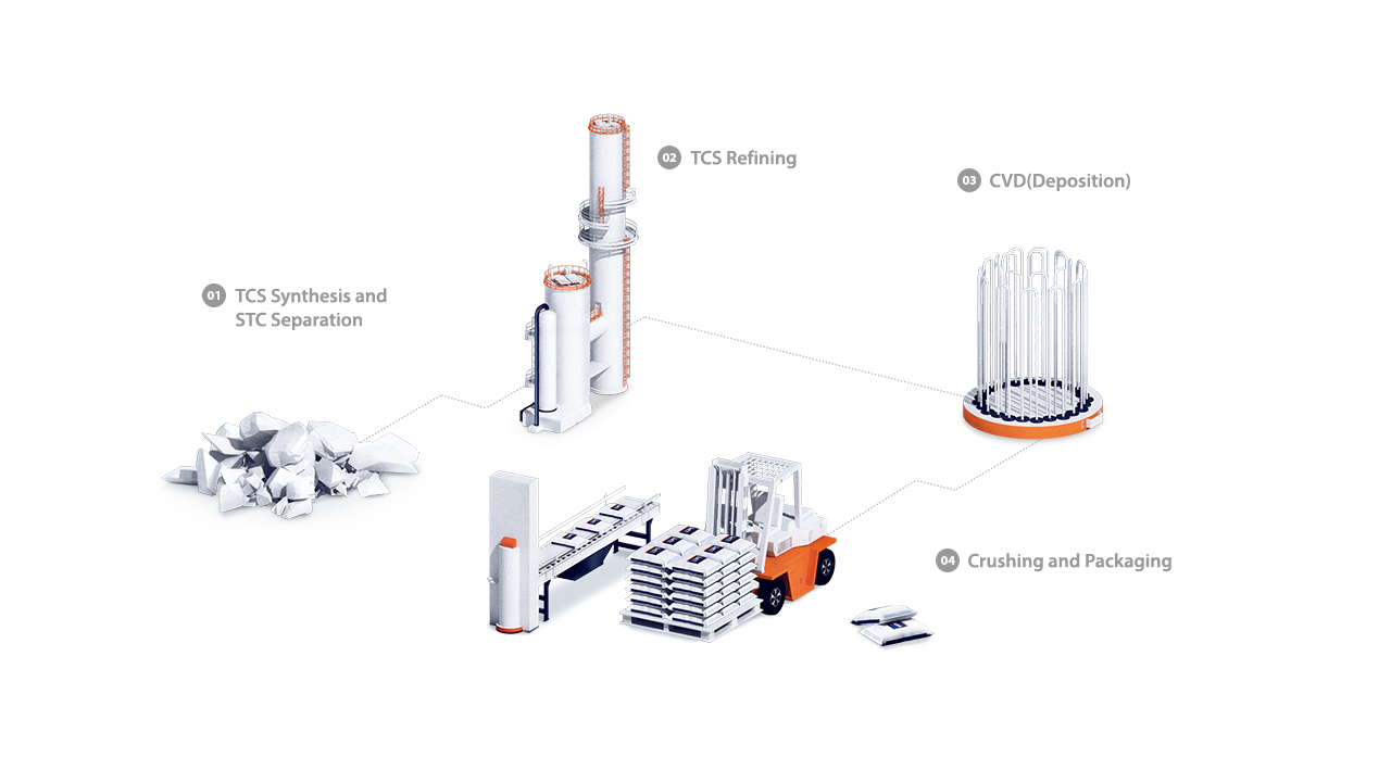 Mixed Silane gas is generated by reacting MG-Si and HCl. Through a distillation process, STC(Silicontetrachloride:SiCl4)