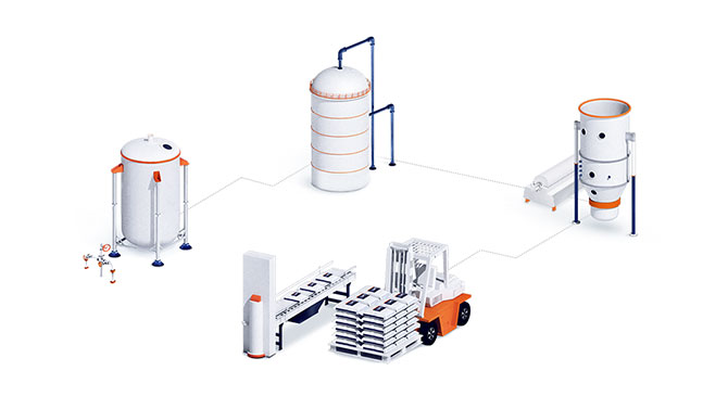 用离心机将料浆中的自由水分去除,并将它喷入干燥机内后转化为热空气和水,最后生成PVC Resin( 聚氯乙烯粉末 )。